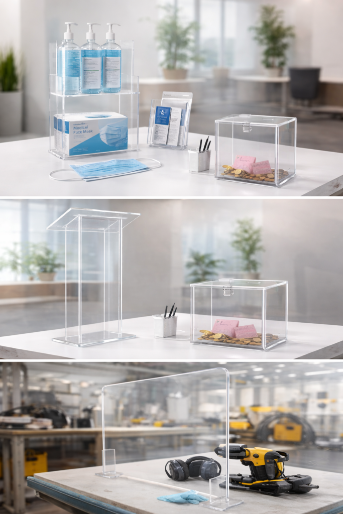 Markanızı görünür kılın, sunumlarınıza prestij kazandırın. Fuar alanlarından mağaza vitrinlerine kadar her ortam için özel ölçü ve tasarımda pleksi stand ve kürsüler üretiyoruz. Şıklık, dayanıklılık ve fonksiyonelliği bir arada sunuyoruz.